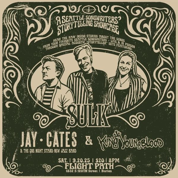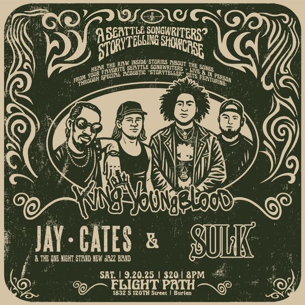 Jay Cates is proud to co-headline The Seattle Songwriters' showcase with our extraordinarily talented friends in SULK and King Youngblood, on Saturday, September 20th, 8:00PM at Flight Path, in Burien.